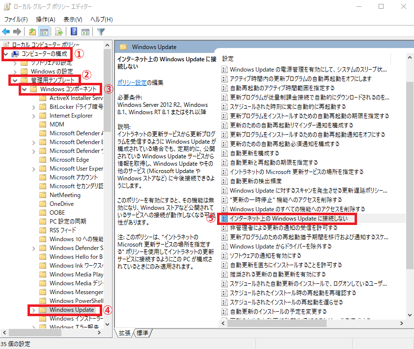 ローカルグループポリシー設定を変更しWSUSのネットワーク経路を回避してWindows Updateで